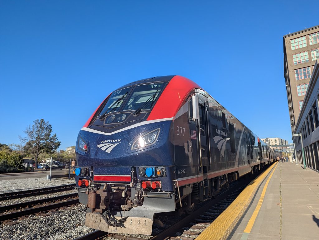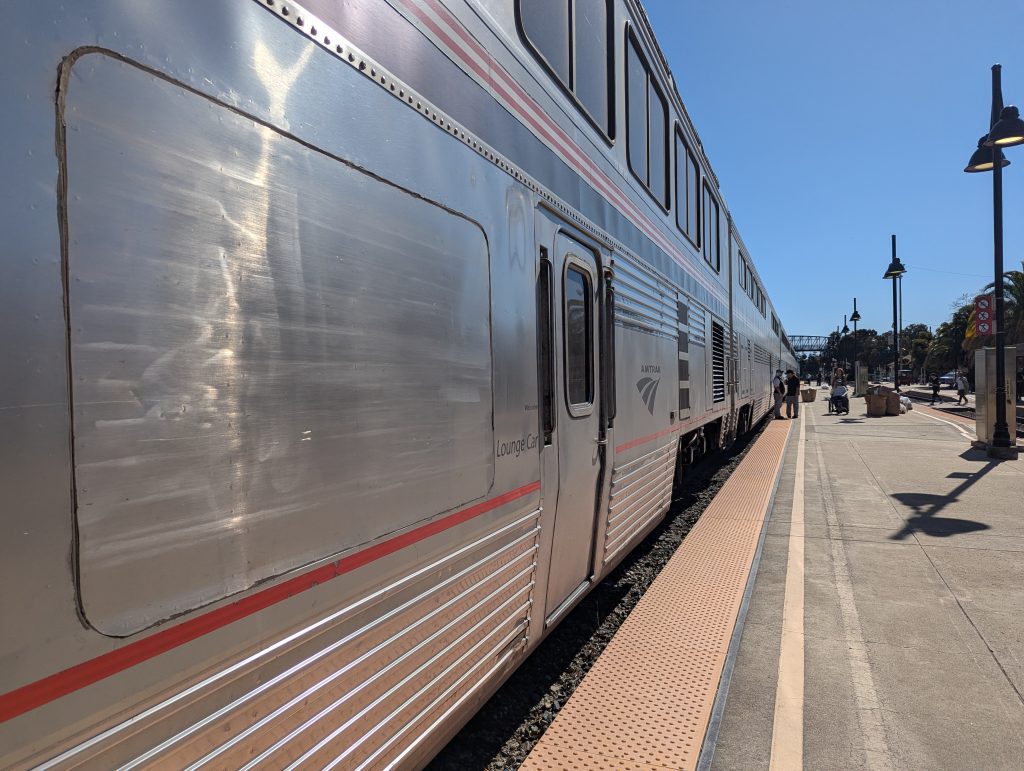 Coast Starlight – The stretch between Portland and SF was something we hadn’t seen by train before. The snowy Cascades were lovely.